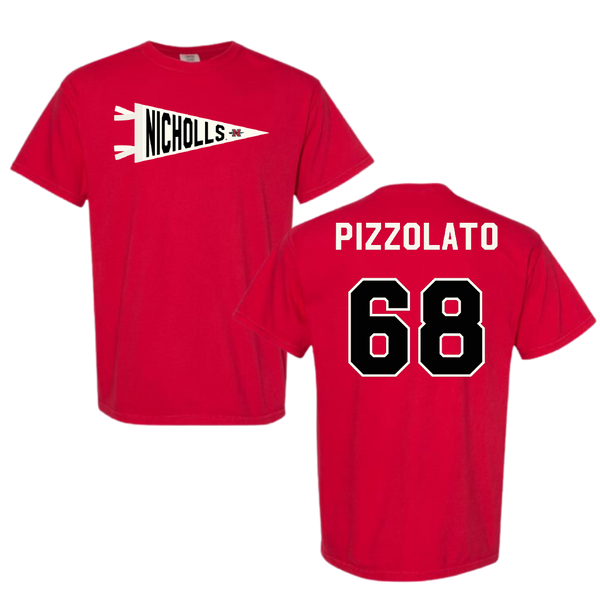 Nicholls State University Football Red Pennant Comfort Colors Tee - #68 Robbie Pizzolato