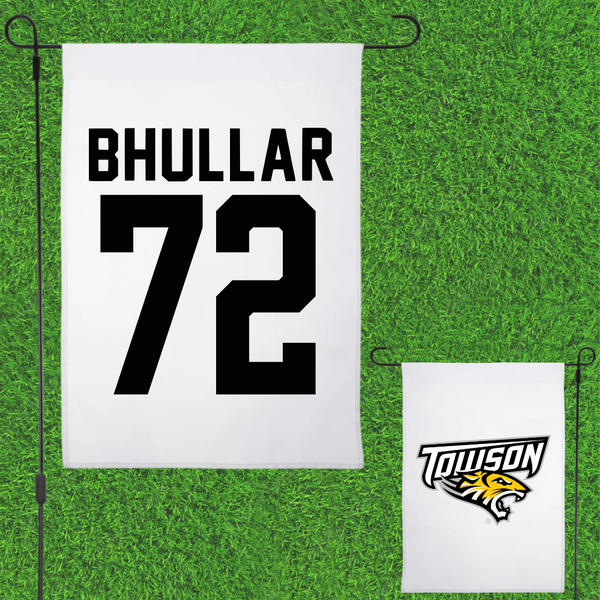 Towson University Football White Garden Flag - #72 Sahil Bhullar
