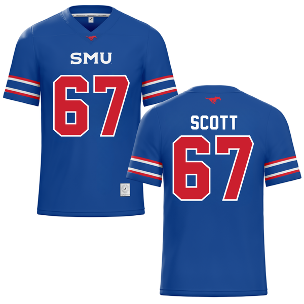 Southern Methodist University Blue Football Jersey - #67 Sean Scott