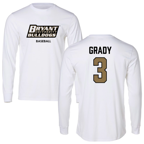 Bryant University Baseball White Classic Long Sleeve - #3 Shea Grady