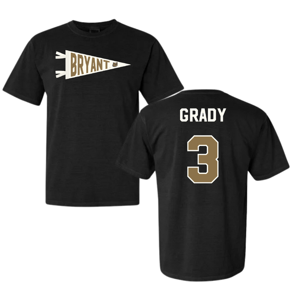 Bryant University Baseball Black Pennant Comfort Colors Tee - #3 Shea Grady