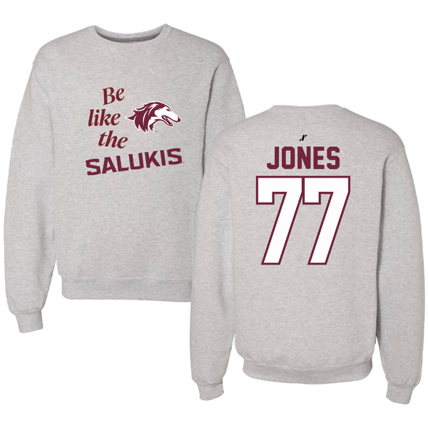Southern Illinois University at Carbondale Softball Light Gray Be Like Us Crewneck - #77 Sidney Jones