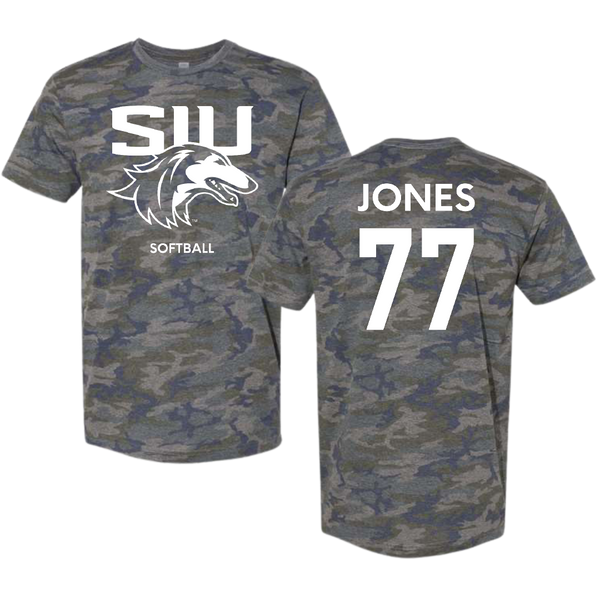 Southern Illinois University at Carbondale Softball Vintage Camo Tee - #77 Sidney Jones