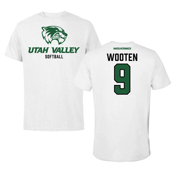 Utah Valley University Softball White Performance Tee - #9 Taylor Wooten