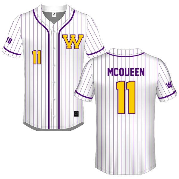 Western Illinois University White Pinstripe Button-Down Jersey - #11 Tori McQueen