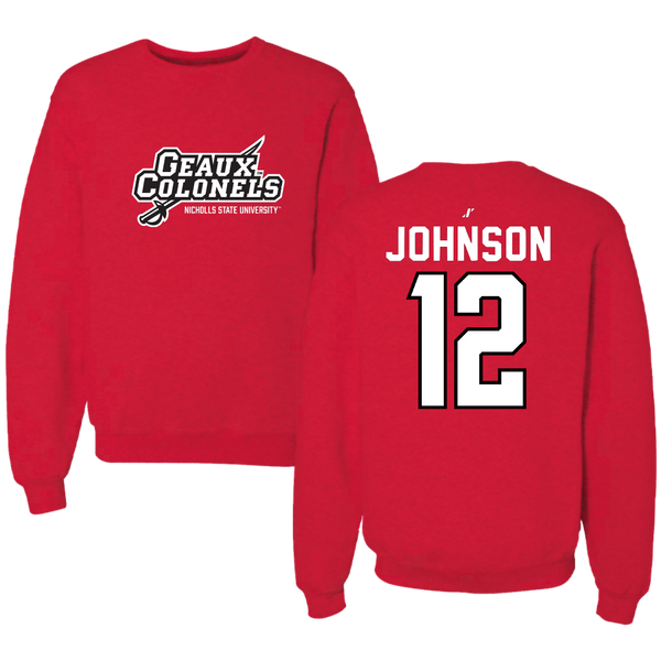 Nicholls State University Baseball Red General Crewneck - #12 Tyler Johnson
