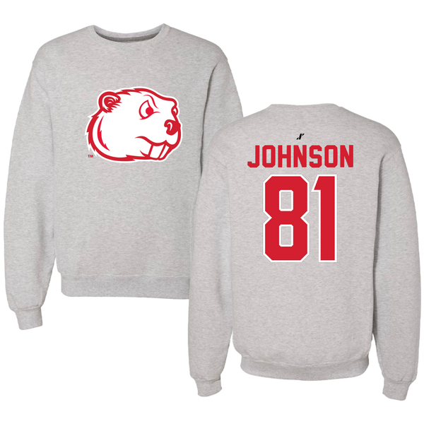Minot State University Football Light Gray Crewneck - #81 Tyler Johnson