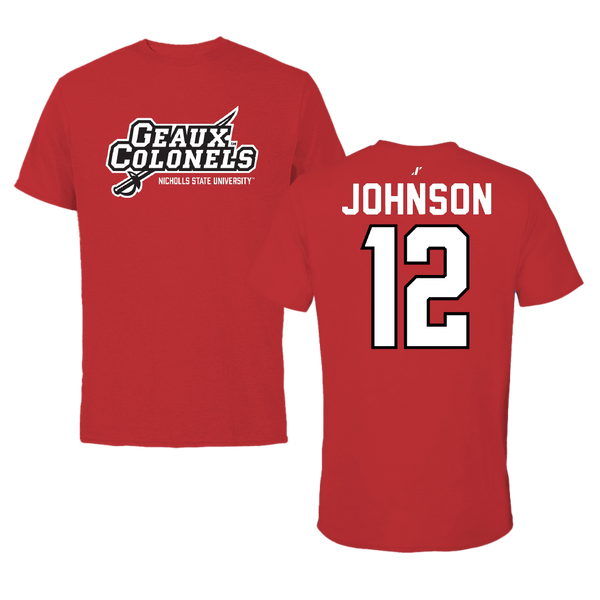 Nicholls State University Baseball Red General Performance Tee - #12 Tyler Johnson