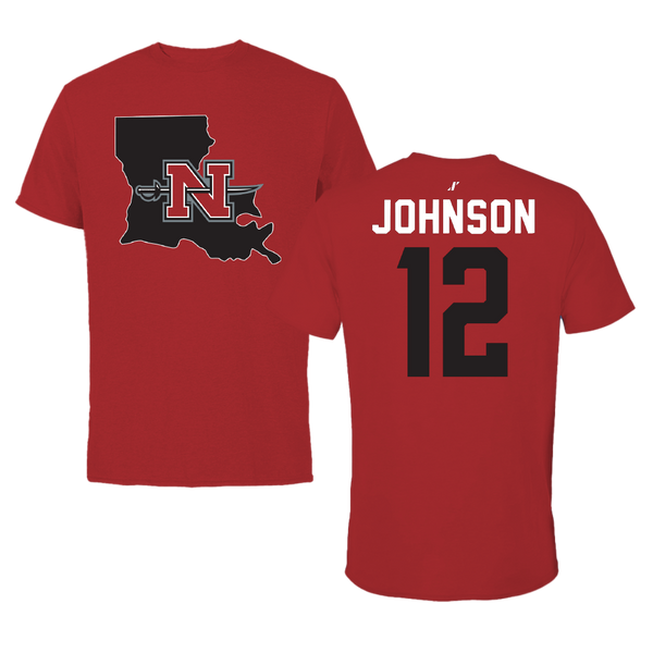 Nicholls State University Baseball Canvas Red State Tee - #12 Tyler Johnson