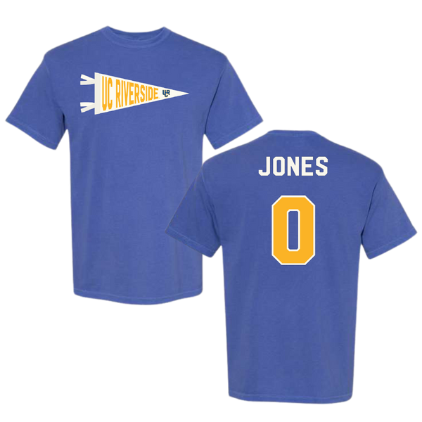University of California-Riverside Basketball Blue Pennant Comfort Colors Tee - #0 Tyler Jones