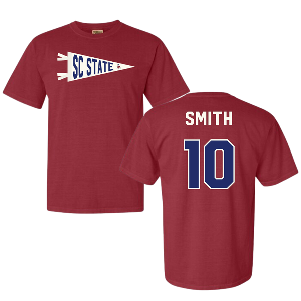 South Carolina State University Football Crimson Pennant Comfort Colors Tee - #10 Tyler Smith