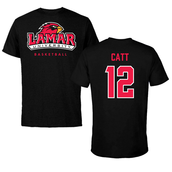 Lamar University Basketball Black Cardinal Tee - #12 Valentin Catt