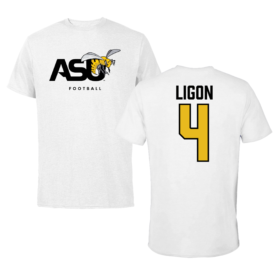 Alabama State University Football White ASU Tee - #4 Karl Ligon