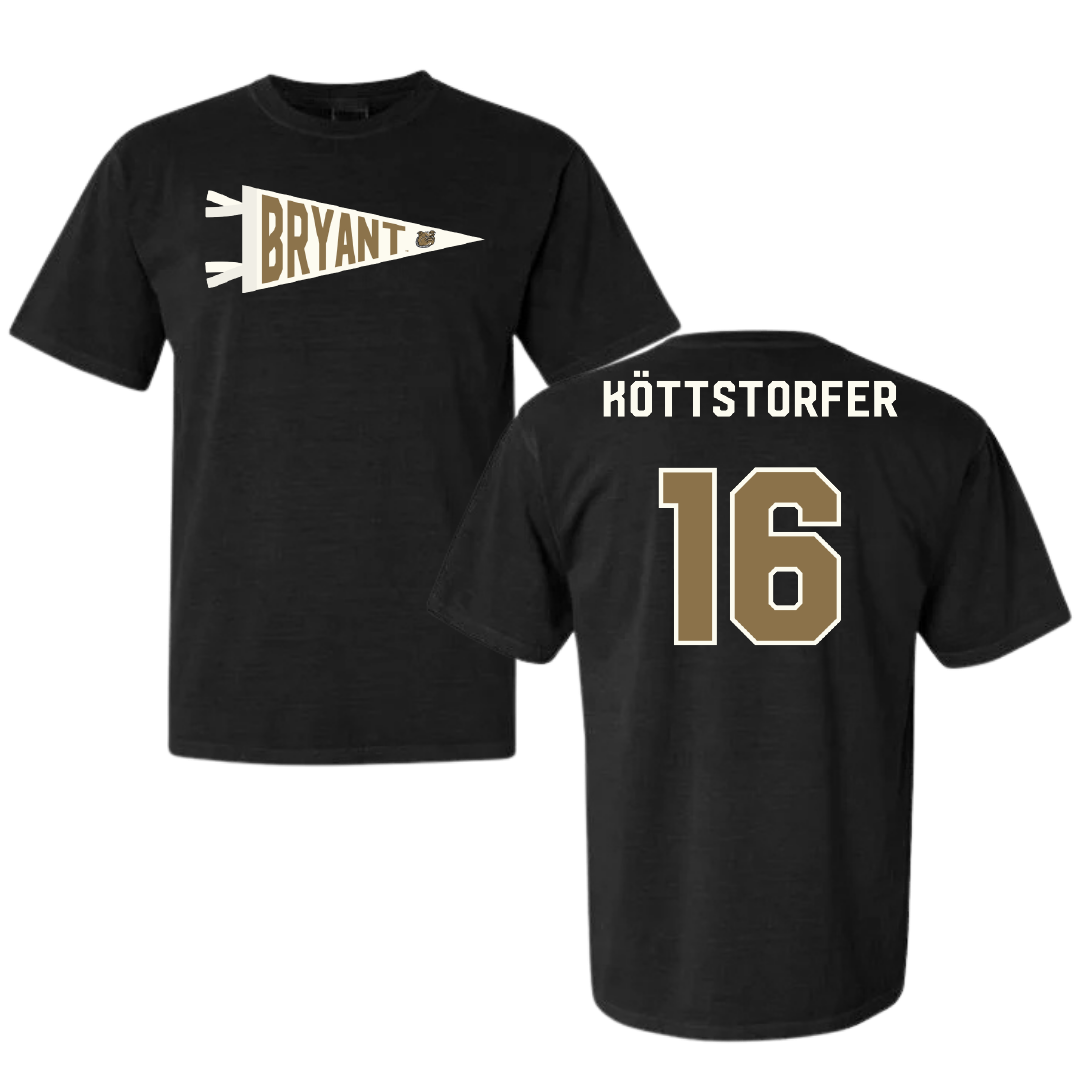 Bryant University Football Black Pennant Comfort Colors Tee - #16 Lukas Köttstorfer