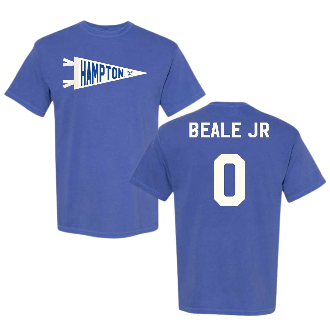 Hampton University Basketball Blue Pennant Comfort Colors Tee - #0 George Beale Jr