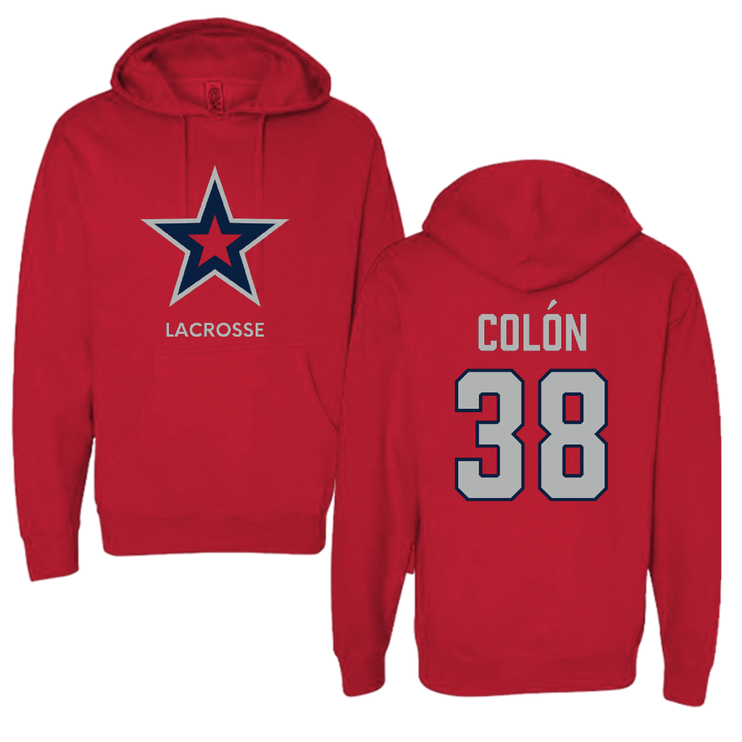 Robert Morris University Lacrosse (M) Red Mascot Hoodie - #38 Sam Colón